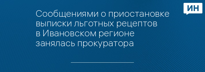 Прокуратура Ивановского региона организовала проверку по факту сообщений СМИ о приостановке выписки медучреждениями рецептов на льготные лекарства, информировали в пресс-службе ведомства. Напомним, накануне областной депздрав пояснил, что трудности с выпиской льготных рецептов возникли по причине технического сбоя.