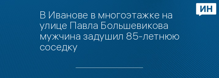 В Иванове 57-летний мужчина хладнокровно расправился с 85-летней женщиной, проживающей в соседней квартире. Об этом сегодня, 7 мая, сообщает телеграм-канал “Жизнь мента. Иваново”.