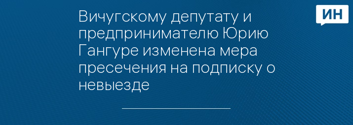 Вичугскому депутату и предпринимателю Юрию Гангуре изменена мера пресечения на более мягкую. 30 июля срок очередного продления домашнего ареста истек. Продлевать его не стали. Меру пресечения решено было изменить под подписку о невыезде. Эту информацию корреспонденту СИ “Ивановские новости” подтвердили в пресс-службе СУ СК по Ивановской области.