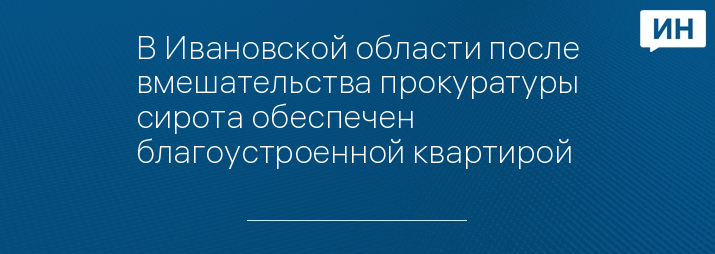 Вичугская межрайонная прокуратура провела соответствующую проверку. После этого межрайонный прокурор обратился в суд с иском о возложении обязанности на Вичугскую горадминистрацию предоставить сироте благоустроенное жилье. Отмечается, что оно должно отвечать санитарным и техническим требованиям.