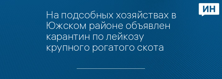 Согласно информации от БГУ Ивановской области «Палехская районная станция по борьбе с болезнями животных», эпизоотический очаг лейкоза крупного рогатого скота объявлен на нескольких территориях личных подсобных и крестьянских фермерских хозяйств в Южском районе Ивановской области. С полным списком хозяйств, в которых объявлен карантин, можно ознакомиться здесь.