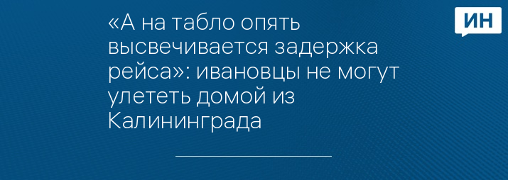 По словам читательницы, вылет из Калининграда переносили с 15:00 на протяжении четырёх часов, пока не объявили новое время – 5 утра сегодняшнего дня. Представителя аэропорта пассажиры «едва отыскали». В гостиницу ивановцев привезли только в 23:00.