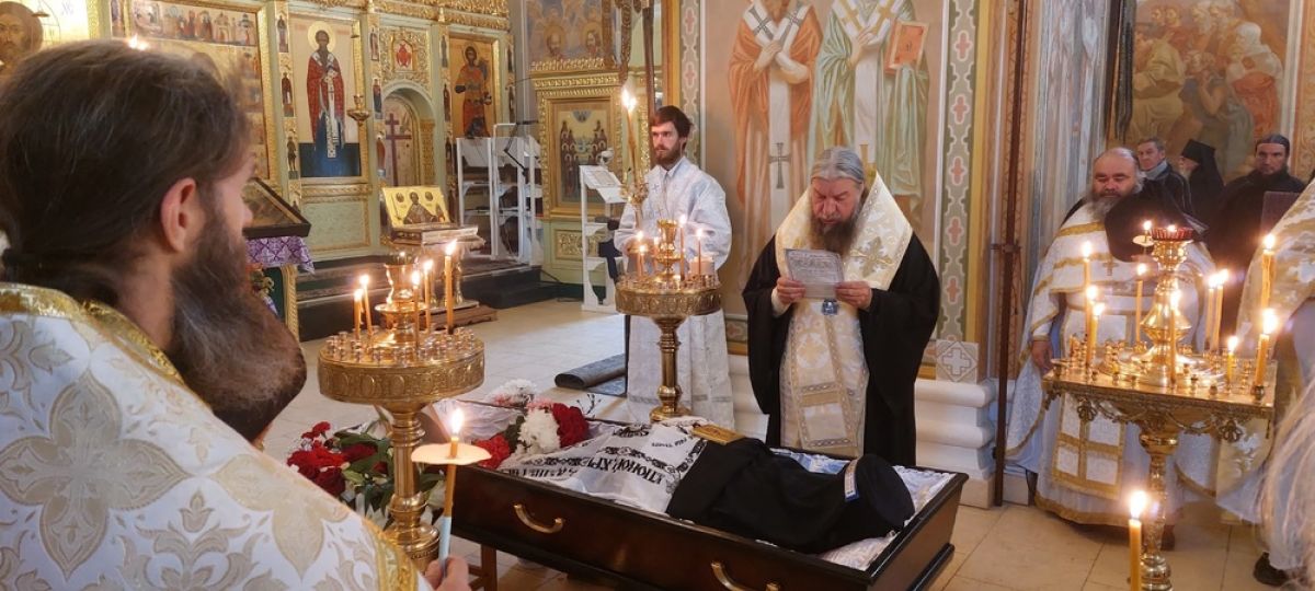 Прощание и отпевание состоялись 3 октября в Никольском соборе монастыря. В этот день, в попразднество Воздвижения Креста и память великомученика Евстафия Плакиды, митрополит Астраханский и Камызякский Никон совершил заупокойную литургию по усопшему. Ему сослужили братия монастыря в священном сане во главе с архимандритом Филиппом. По окончании литургии чин отпевания возглавил епископ Шуйский и Тейковский Иоанн в сослужении епископа Савватия и монастырской братии.