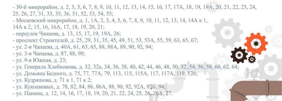 Под отключение попадают следующие адреса: