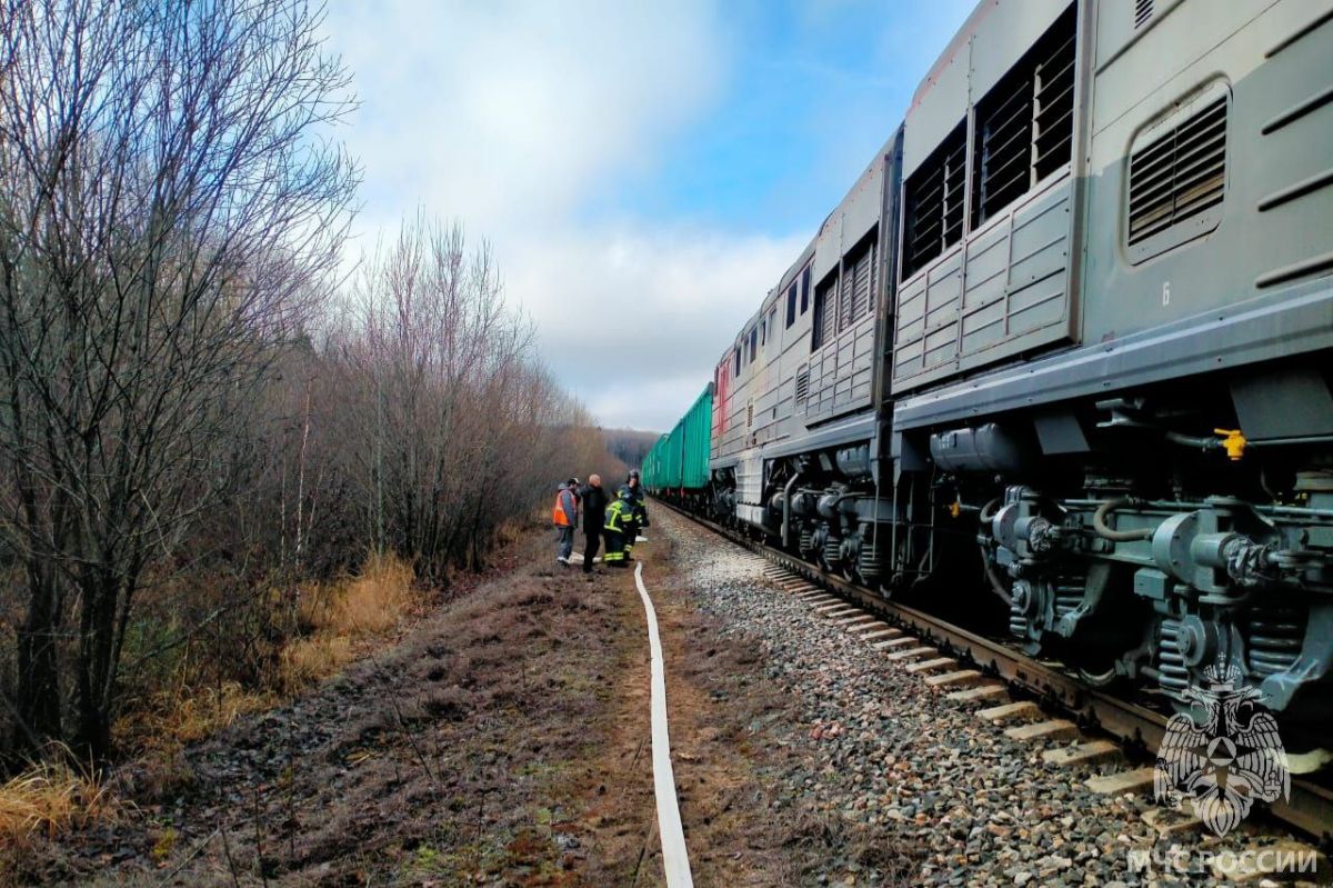Пресс-служба регионального МЧС сообщает, пожар зафиксирован в 10:32. Горел грузовой тепловоз из 57 вагонов около деревни Земляничный. Транспорт был отцеплен. По прибытии пожарных горел моторный отсек. Тушение проходило с использованием пожарного поезда. Огонь распространился на площади 10 «квадратов». Причина возгорания еще устанавливается. О пострадавших дополнительно не сообщается.