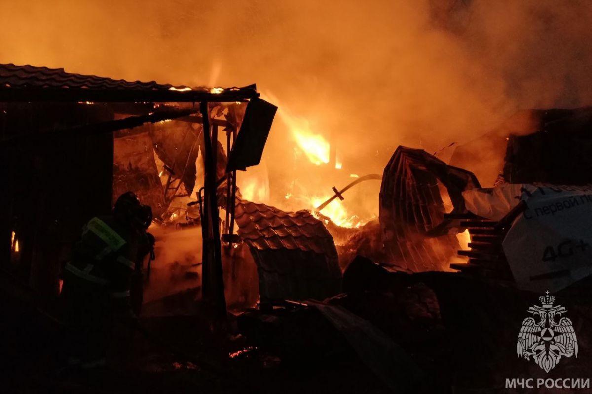 Прибывшие на место происшествия пожарно-спасательные подразделения обнаружили, что ангар горит по всей площади, существовала угроза распространения огня на соседний жилой дом.