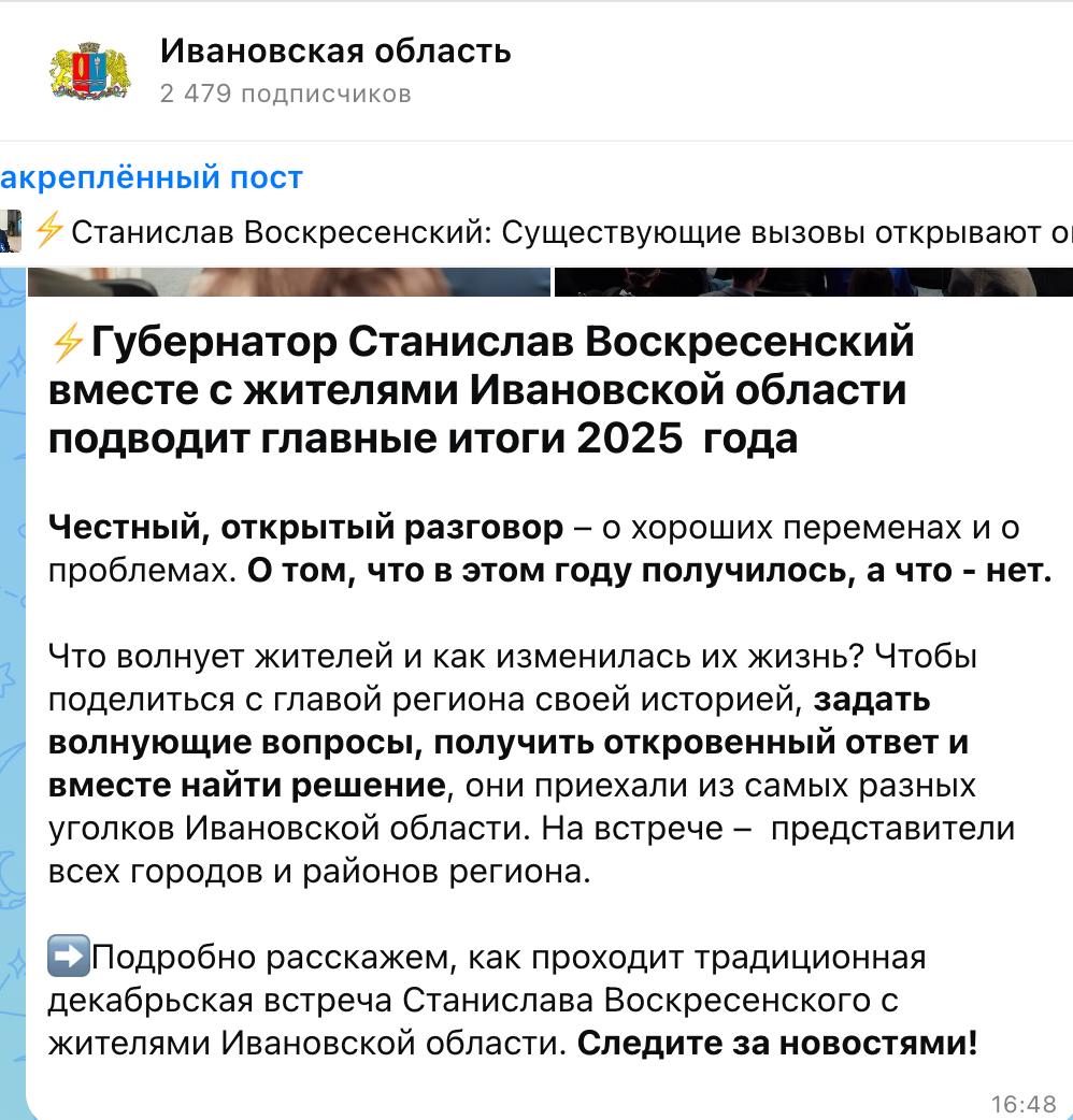 В пресс-службе правительства Ивановской области закрытую от независимых СМИ встречу губернатора региона Станислава Воскресенского с жителями назвали «открытым диалогом». Соответствующее заявление вышло в MAX-канале ведомства.