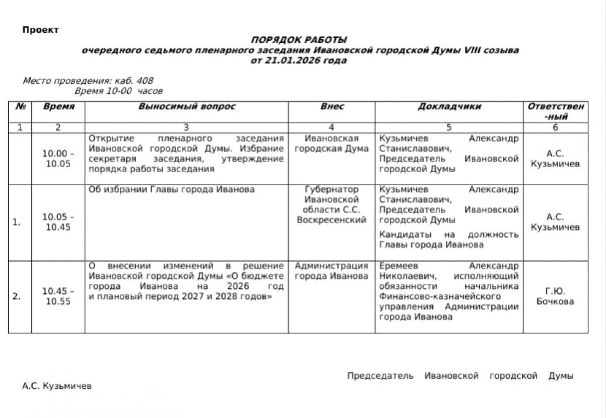 Сегодня, 21 января, на пленарном заседании Ивановской городской думы нардепы сделают свой выбор. Среди пяти кандидатов им предстоит выбрать того, кто достоин занять место мэра. Зарегистрировавшиеся на конкурс представят свои программы. На месте событий корреспондент СИ "Ивановские новости".