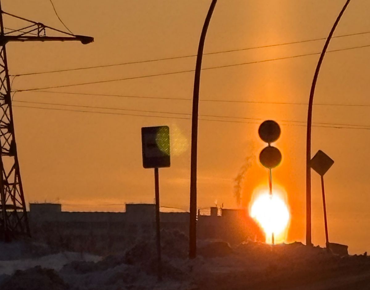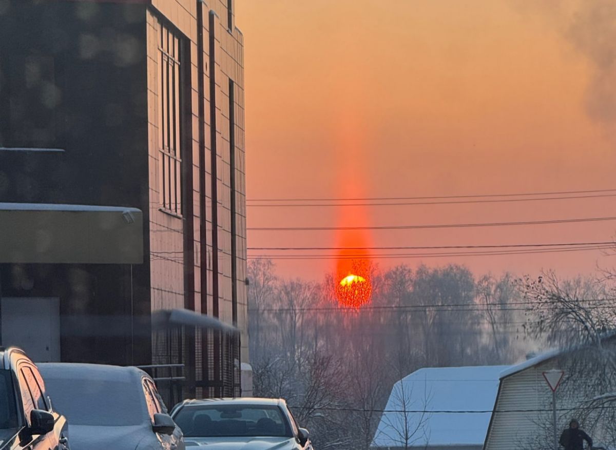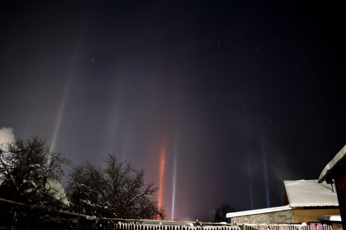 Ивановцы наблюдали яркие световые столбы от солнца и уличного освещения.