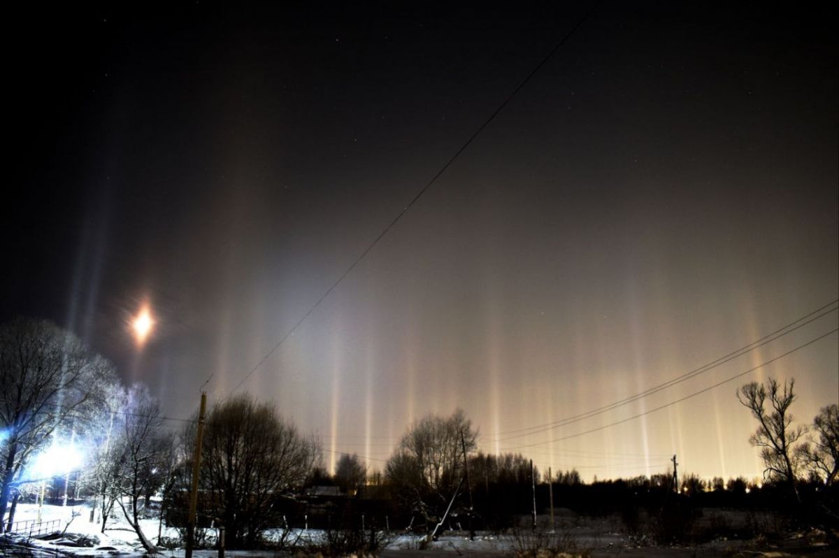 На закате 24 января жители Ивановской области наблюдали яркие световые столбы от солнца. Ближе к ночи световые столбы появились уже от искусственного света.