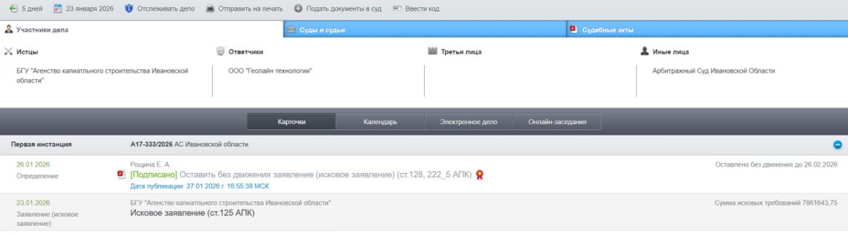 Агентство капитального строительства Ивановской области (БГУ «АКС») обратилось в арбитражный суд 37-го региона с новым иском против компании «Геолайн Технологии» – подрядчика строительства Дворца водных видов спорта.