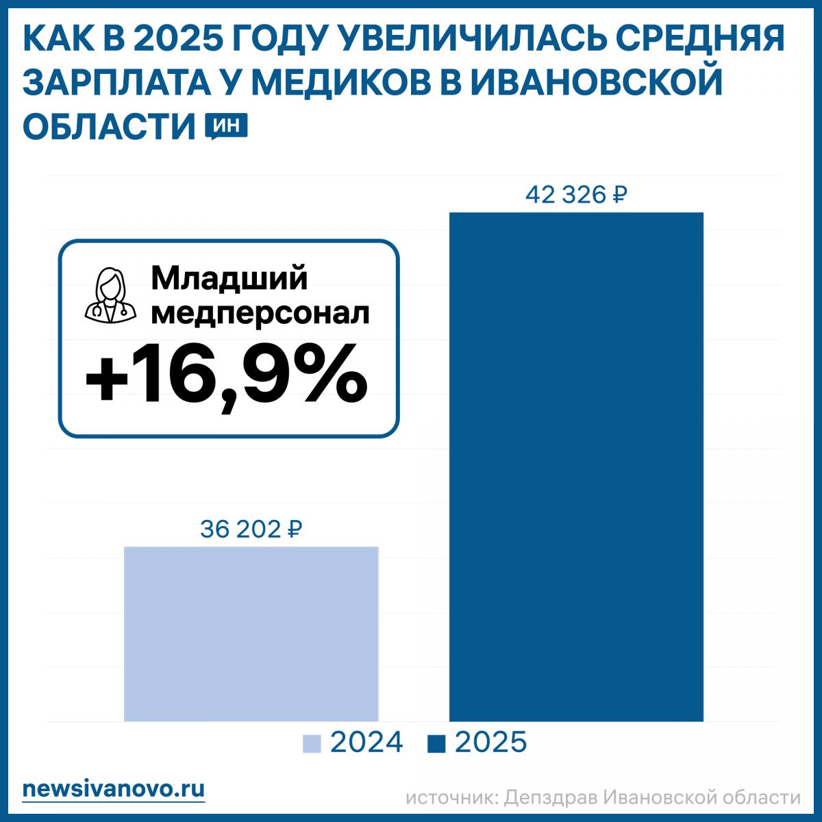 Оклад младшего медицинского персонала увеличился до 42 326,1 рубля против 36 201,6 рубля в 2024 году, то есть на 16,9%.