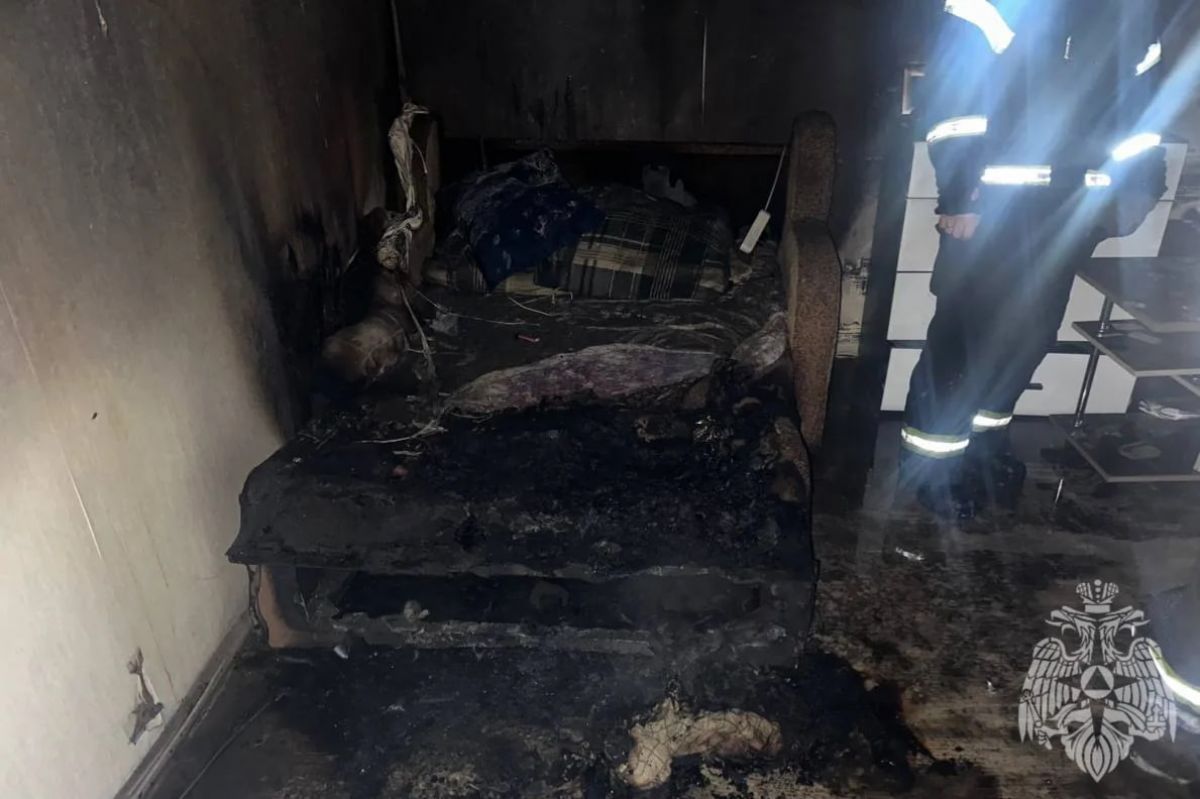 Пожар ликвидировали на площади 2 квадратных метра. Предварительной причиной возгорания названо неосторожное обращение с огнем при курении.