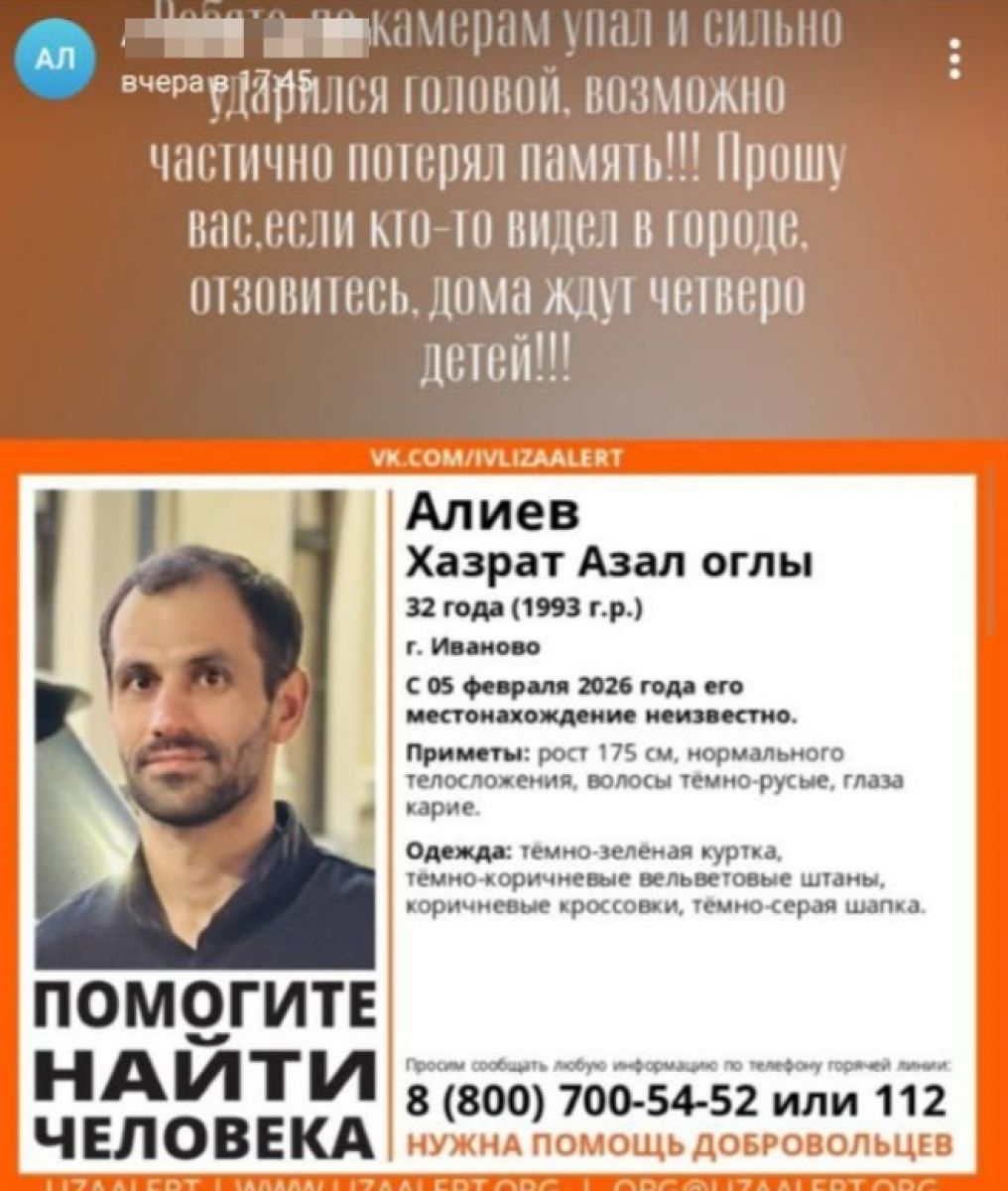 В социальных сетях, судя по всему, родственница с той же фамилией сообщила, что без отца остались четверо детей. Незадолго до печального известия она опубликовала обращение, в котором писала, что мужчина, судя по видео, мог упасть и удариться головой, частично потеряв память, и просила помощи в поисках.