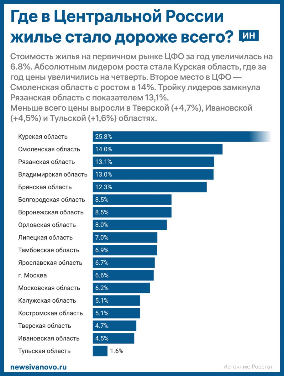 Согласно традиционному рейтингу «Бизнес-журнала. Центр», составленному на основе данных Росстата за 2025 год, Ивановская область оказалась в числе регионов с самыми низкими темпами роста цен на жилье в Центральном федеральном округе.