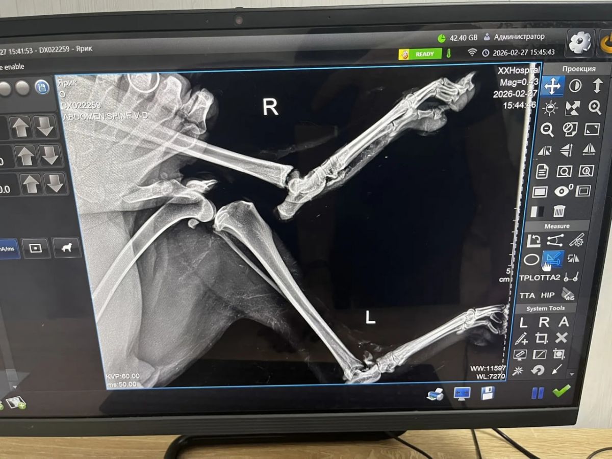 Как сообщает администрация приюта «Майский день», к сожалению, у собаки были выявлены серьезные травмы: скальпированная рана хвоста и переломы скакательных суставов обеих задних конечностей. Для восстановления ей потребуется сложная и дорогостоящая операция, а также дальнейшая реабилитация.