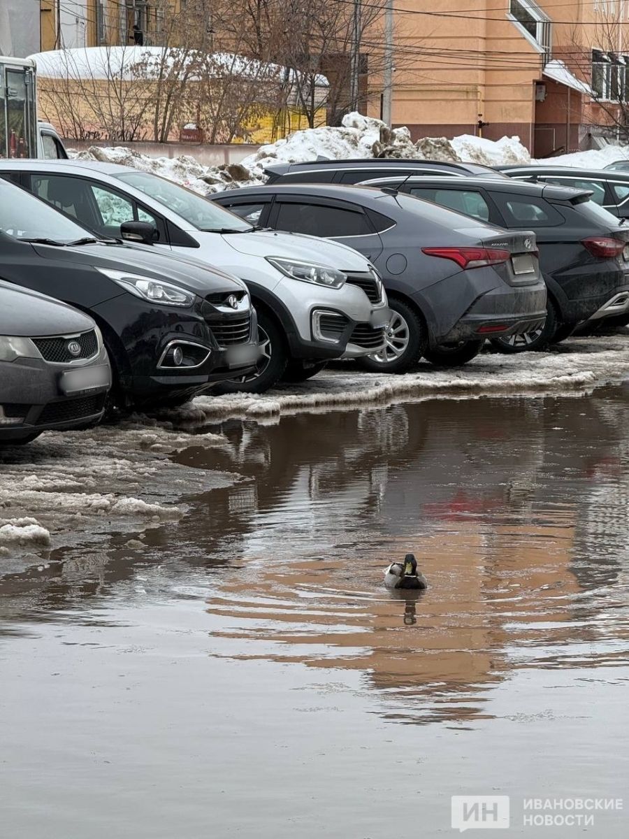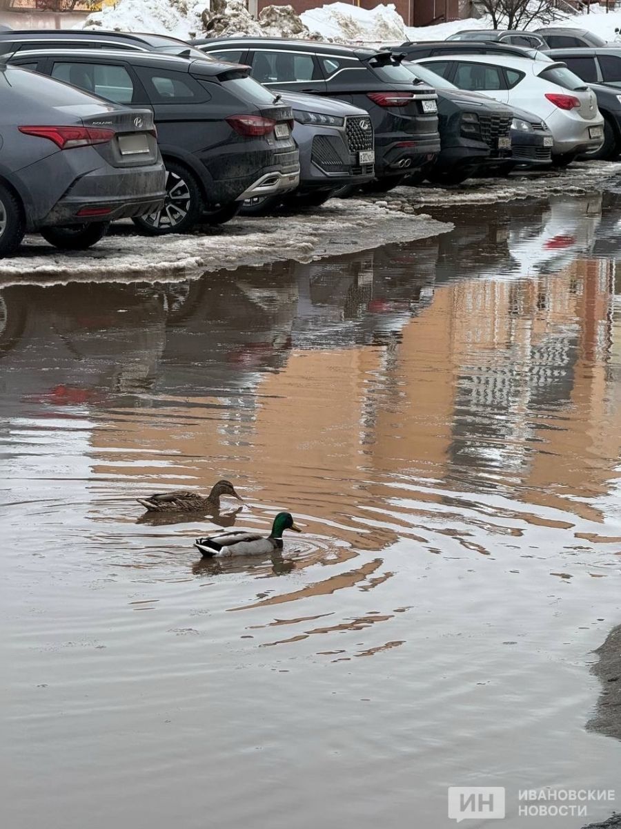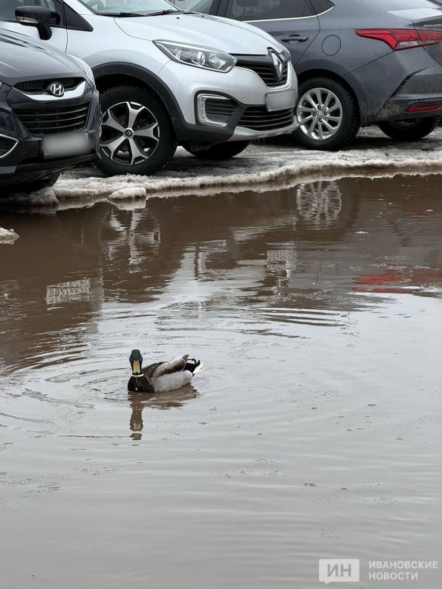В Иванове рядом с площадью Революции местные жители заметили уток, плавающих в большой луже среди припаркованных автомобилей. Фотографии прислал читатель «Ивановских новостей» в наш бот «Дежурный по новостям».