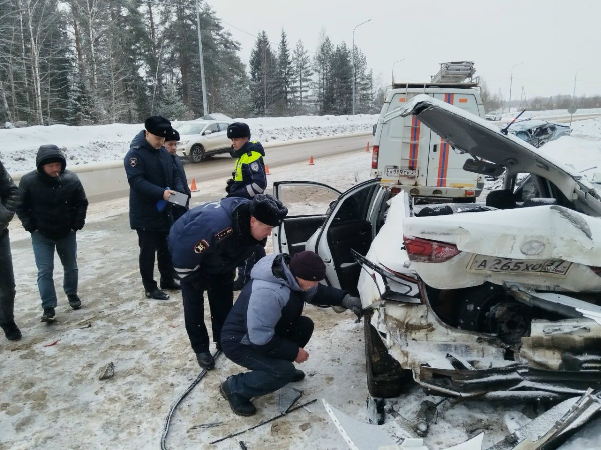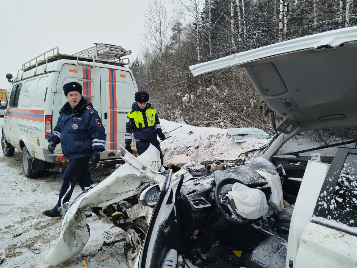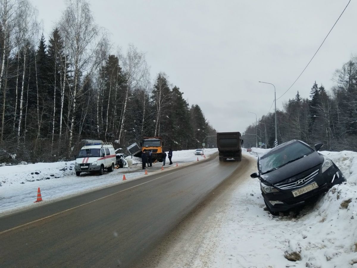 По предварительной информации, грузовик «Шахман» двигался из областного центра в сторону Фурманова. Сначала он врезался в легковое авто «Лада Гранта», после чего столкнулся с «Хенде Солярис» с прицепом.