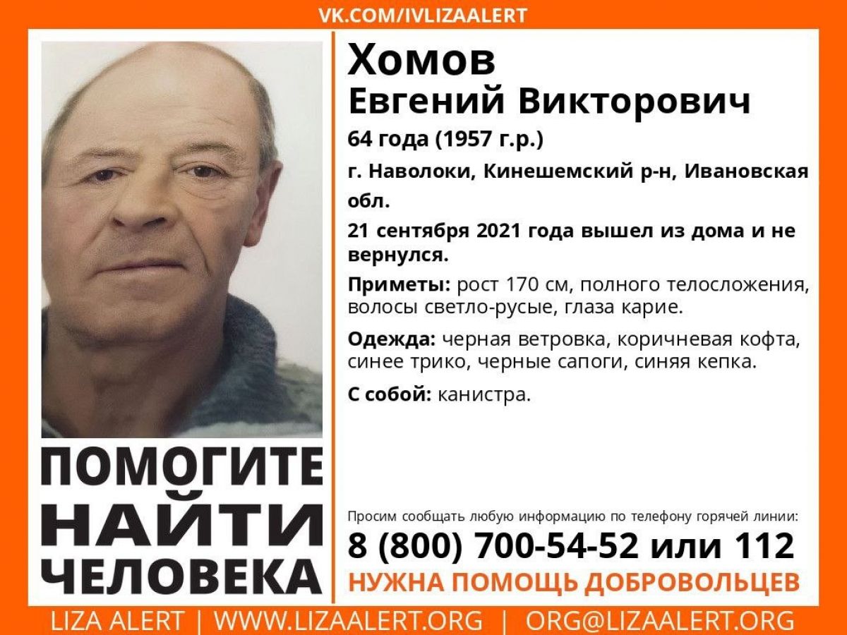 Среди тех, кого ищут, - Евгений Хомов, 64-летний житель города Наволоки Кинешемского района. Мужчина пропал еще 21 сентября 2021 года. Он вышел из дома, чтобы набрать воды на колонке, и исчез. Ситуация осложняется тем, что Евгений страдает потерей памяти и мог просто потерять ориентацию и уйти в неверном направлении.