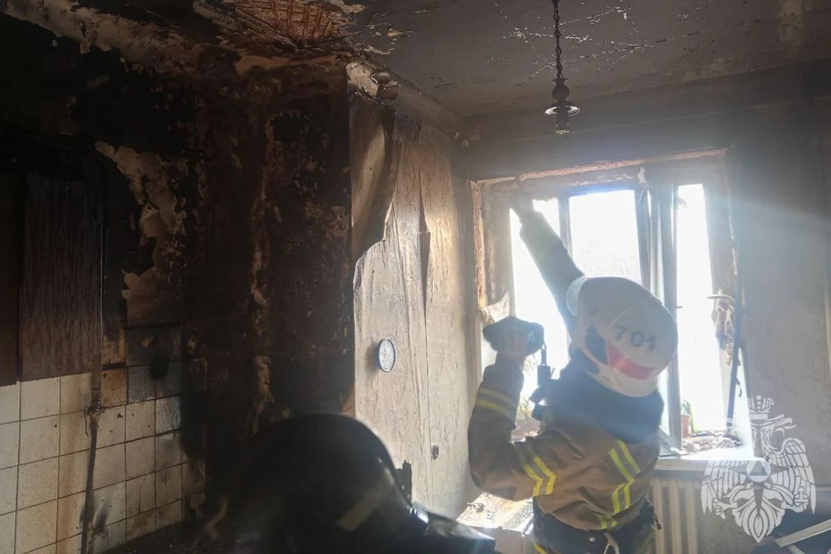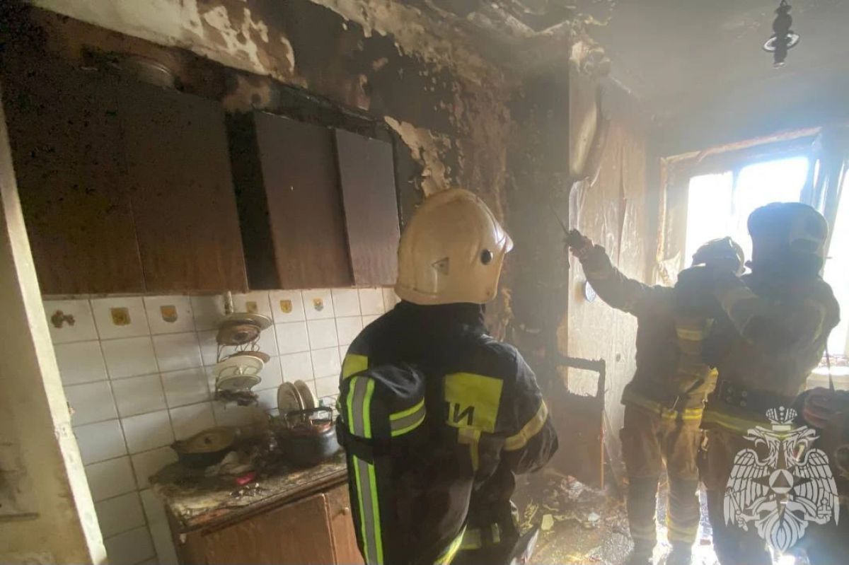 К моменту прибытия пожарно-спасательных подразделений огонь уже распространялся в квартире четырёхэтажного дома №5.
