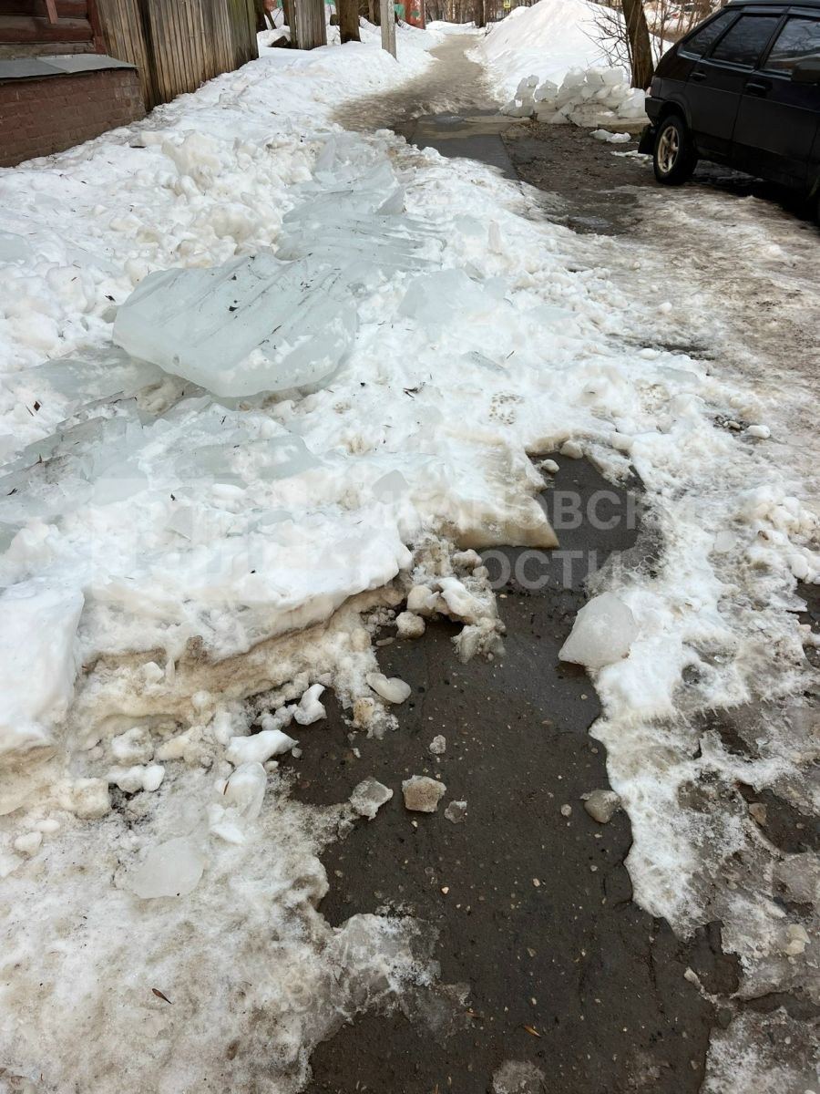 Как рассказала женщина, зимой с крыши дома регулярно сходит снег вместе с частью шифера. Из-за этого территория рядом с домом становится опасной для пешеходов, в том числе и для детей.