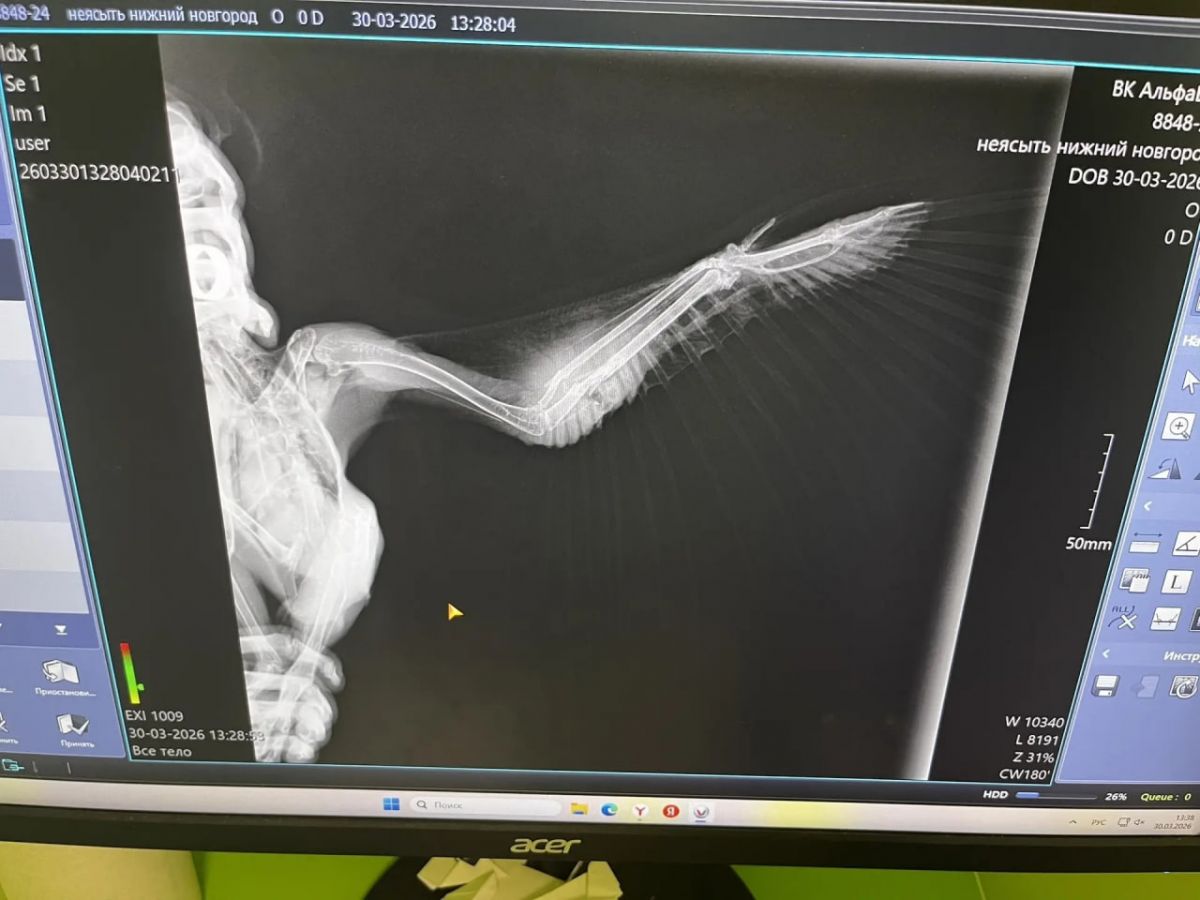 Как сообщают в организации, при обследовании у неясыти были выявлены черепно-мозговая травма и закрытый перелом крыла. Врачи назначили курс лечения, который включает еженедельные контрольные осмотры и фиксацию крыла с помощью лангеты. Птицу ожидает длительный процесс реабилитации.