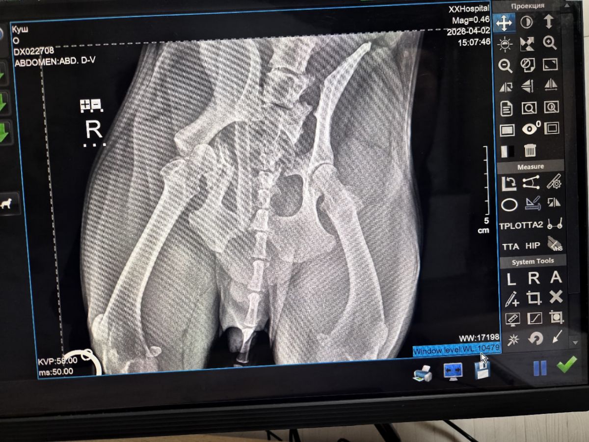 После обследования ветеринары поставили диагноз: перелом подвздошно-крестцового сочленения с обеих сторон и перелом вертлужной впадины справа. Для восстановления здоровья питомца требуется дорогостоящая операция – остеосинтез таза и резекционная артропластика.