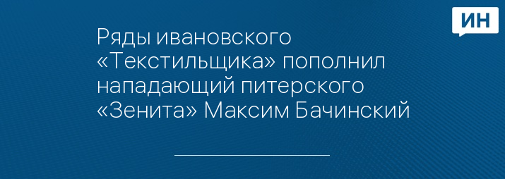Ивановский «Текстильщик» на сезон 2020-2021 подписал контракт с двадцатилетним нападающим Максимом Бачинским. В Ивановскую область о приехал из Санкт-Петербурга.