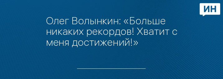 Олег Волынкин: «Больше никаких рекордов! Хватит с меня достижений!»