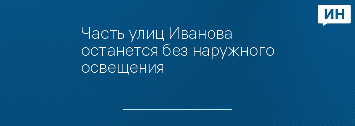 В связи с проведением работ ОАО "Ивгорэлектросеть" по капитальному ремонту линии наружного освещения на 11-м Проезде не будет освещаться проезжая часть улиц: 10-й Проезд (от ул. Г.Фейгина до ул. 10-я Сосневская), 8-й, 9-й, 10-й Сосневских (от ул. Окуловой до 10-го Проезда) в период с 6 декабря по 20 декабря 2010 года, сообщает пресс-служба администрации г. Иваново.