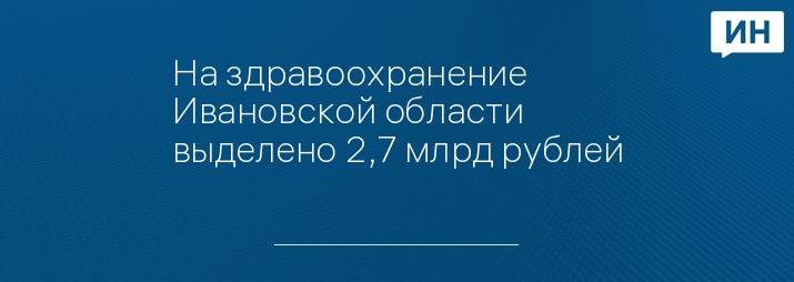 © На здравоохранение Ивановской области выделено 2,7 млрд рублей