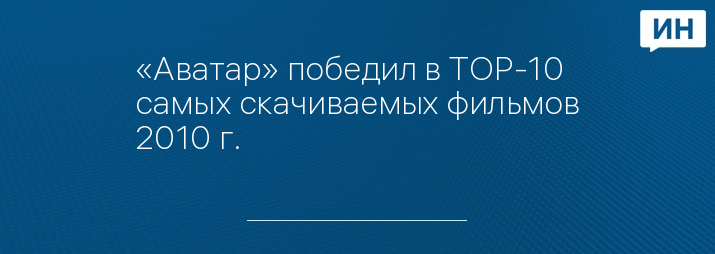 Самым популярным в 2010 году назван фантастический экшен «Аватар» Джеймса Кэмерона. Его скачали 16,5 млн пользователей. Кроме того, «Аватар» лидирует и по формату Blu-Ray, в первые четыре дня после его выхода, его загрузили 200 тысяч раз.