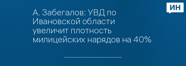 © А. Забегалов: УВД по Ивановской области увеличит плотность милицейских нарядов на 40%