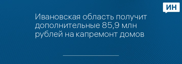 Ивановская область получит дополнительные 85,9 млн рублей на капремонт домов