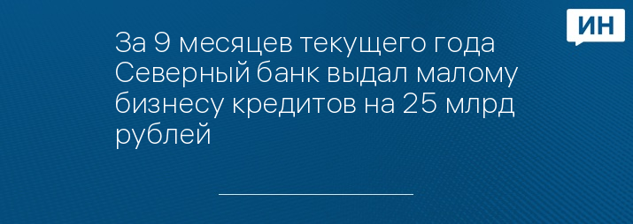 © За 9 месяцев текущего года Северный банк выдал малому бизнесу кредитов на 25 млрд рублей