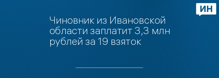 © Чиновник из Ивановской области заплатит 3,3 млн рублей за 19 взяток
