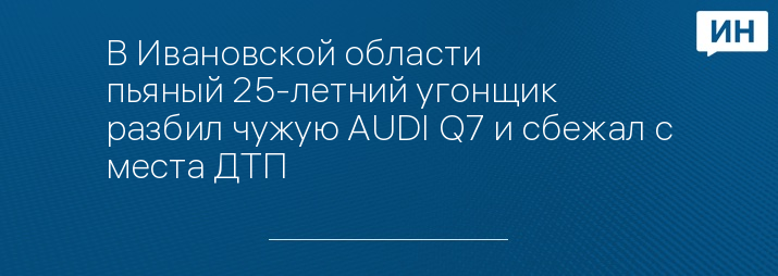 © В Ивановской области пьяный 25-летний угонщик разбил чужую AUDI Q7 и сбежал с места ДТП
