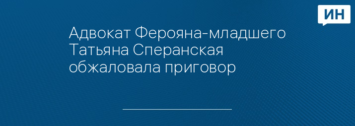 © Адвокат Ферояна-младшего Татьяна Сперанская обжаловала приговор