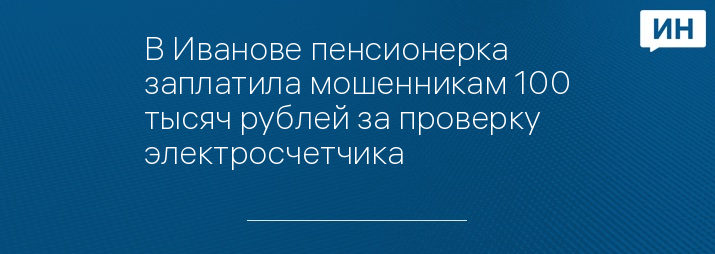 © В Иванове пенсионерка заплатила мошенникам 100 тысяч рублей за проверку электросчетчика