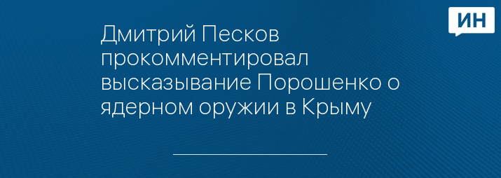 Управляющий делами президента России Дмитрий Песков дал комментарий заявлениям украинского президента Петра Порошенко о планах Российской Федерации разместить ядерное оружие на полуострове Крым.