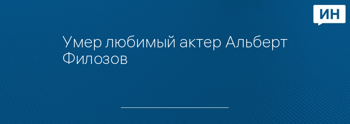 В Москве после тяжелой болезни скончался известный советский и российский актер театра и кино народный артист Российской Федерации Альберт Филозов.