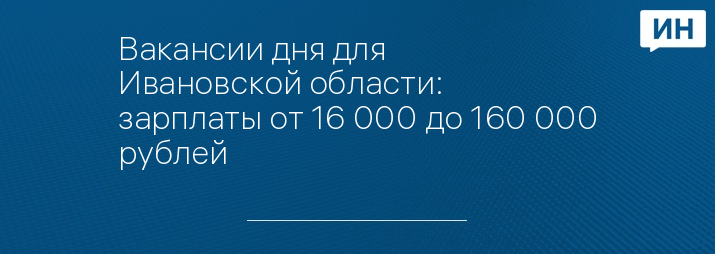 Вакансии дня для Ивановской области: зарплаты от 16 000 до 160 000 рублей