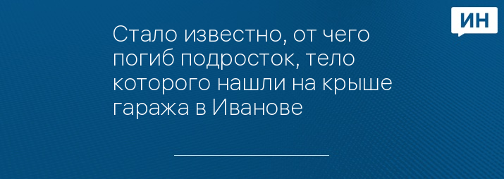 Напомним, тело 18-летнего парня обнаружил мужчина на крыше одного из гаражей в гаражном кооперативе на улице Огородной в Иванове.