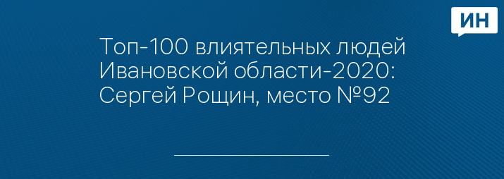Продолжает «ТОП-100 влиятельных людей Ивановской области – 2020» и 92 место занимает начальник департамента управления имуществом Ивановской области Сергей Рощин.
