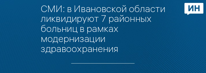 Облправительство утвердило программу модернизации первичного звена здравоохранения Ивановской области на 2021–2025 годы. Согласно этому документу, до 2025 года ликвидируют 7 центральных районных больниц по причине малочисленности населения районов.
