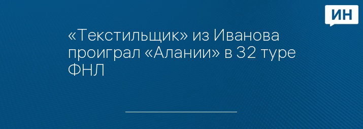 ФК "Текстильщик" из Иванова в упорной борьбе уступил владикавказской "Алании" в рамках 32 тура ФНЛ.