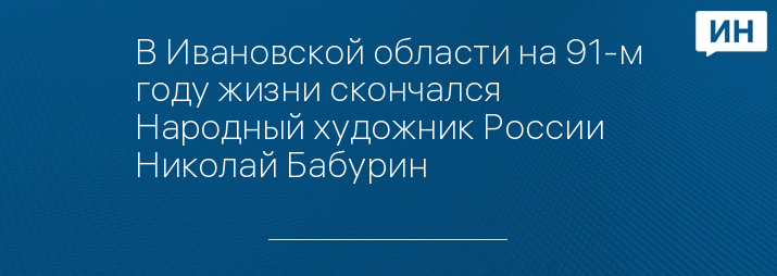 В субботу, 15 мая, не дожив 5 дней до своего 91-летия, умер народный художник России, лауреат премии И. Е. Репина, почетный гражданин Южского района Николай Иванович Бабурин.
