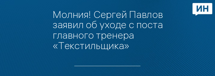 Как уже сообщали «Ивановские новости», в сентябре появилась информация о том, что из ФК «Текстильщик» уйдет главный тренер Сергей Павлов.